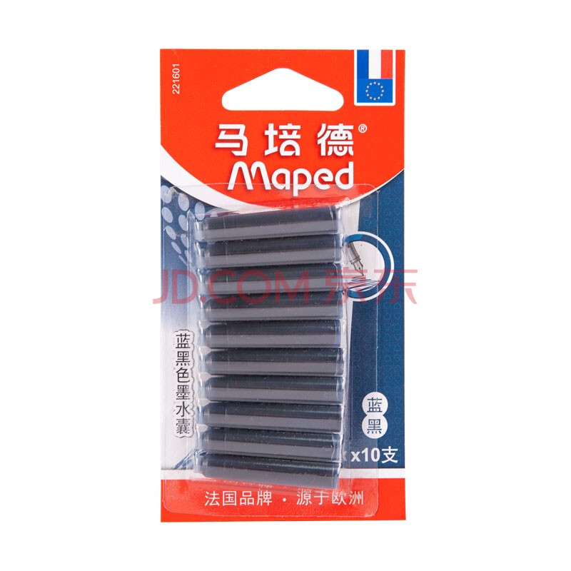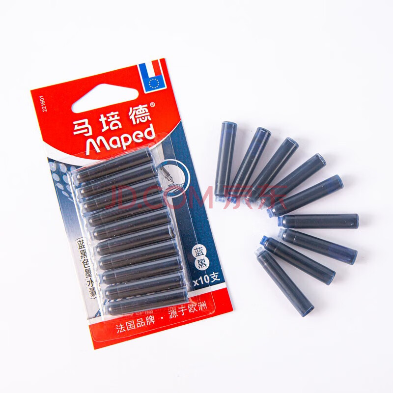 商品相册:马培德Maped 墨水管墨囊 可替换钢笔墨囊 墨胆替芯 钢笔墨水 欧标钢笔适用墨囊 蓝黑色1卡(10支)221601CH第