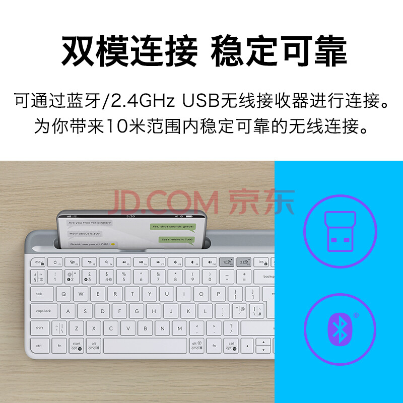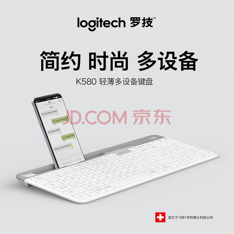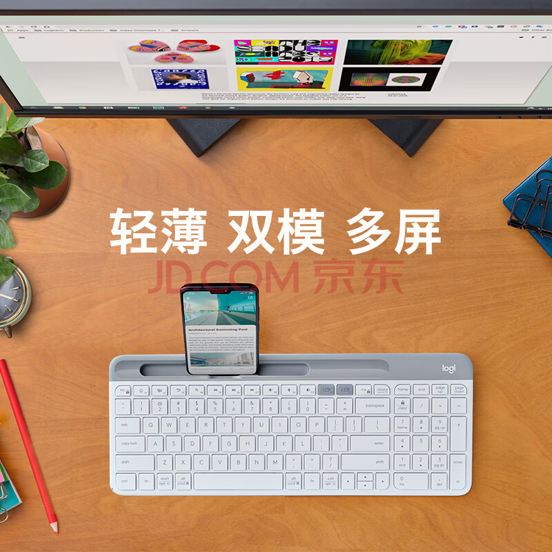 商品相册:罗技(Logitech)时尚系列 K580 无线蓝牙键盘 办公键盘 便携超薄 笔记本键盘 平板键盘 芍药白 101键第