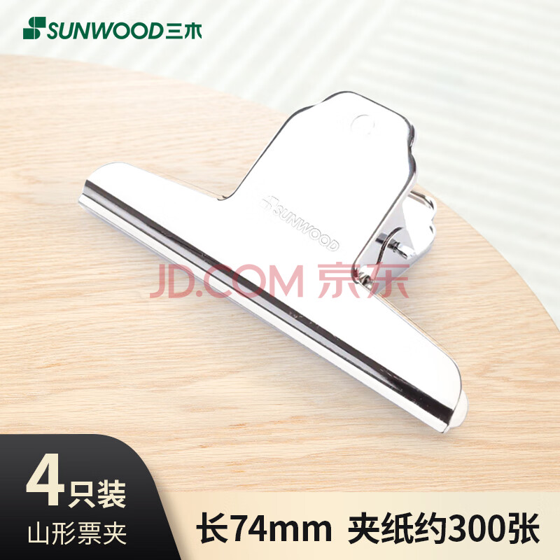 商品相册:三木(SUNWOOD)74mm山型铁票夹/财务票据夹/金属资料夹 4只/袋 2069第