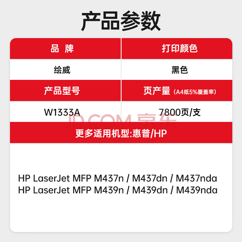 商品相册:绘威W1333A粉盒带芯片2支装 适用惠普HP M437n M437dn墨粉盒M437nda墨盒M439n硒鼓M439dn M439nda打印机碳粉第