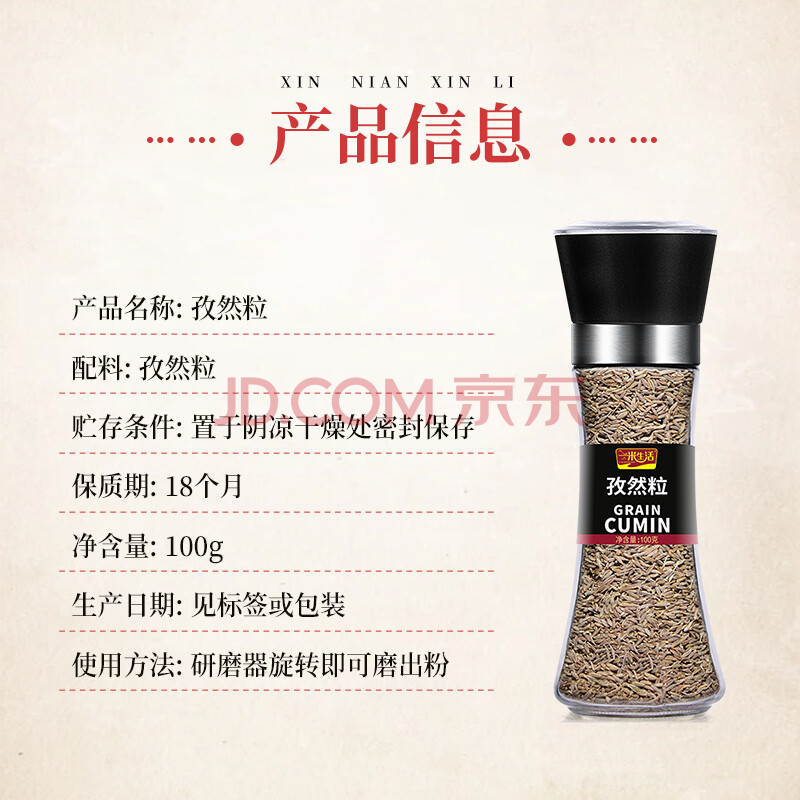 商品相册:一米生活 孜然粒100g 手动研磨瓶 孜然碎烧烤烤肉烤串调料撒料蘸料调味料第