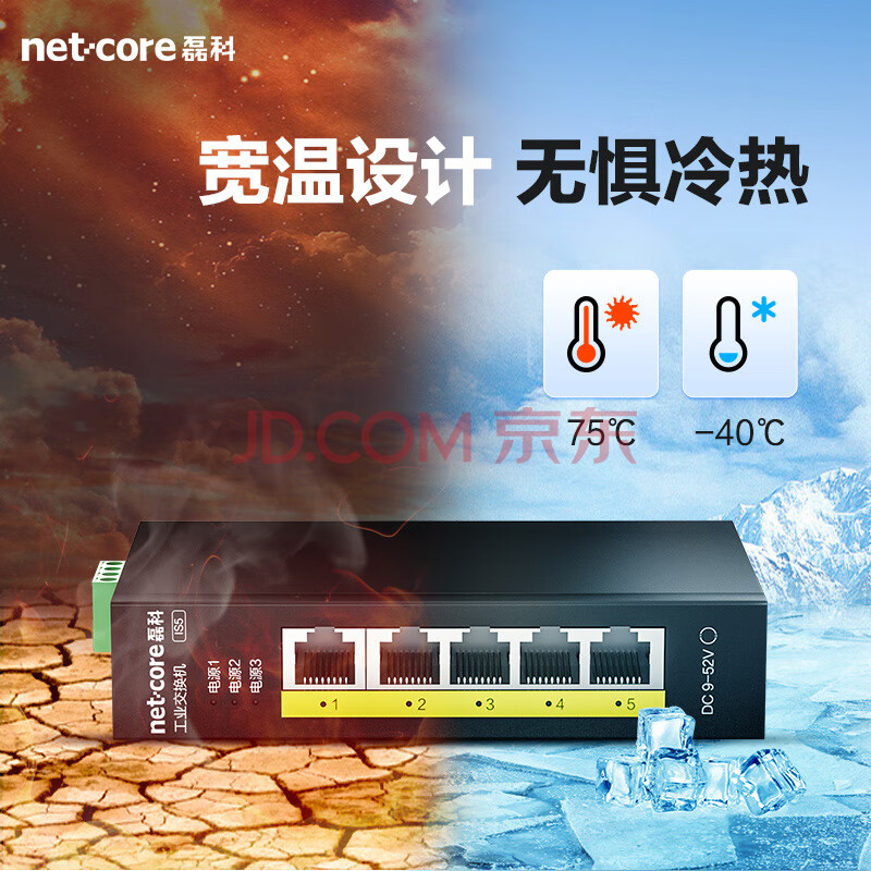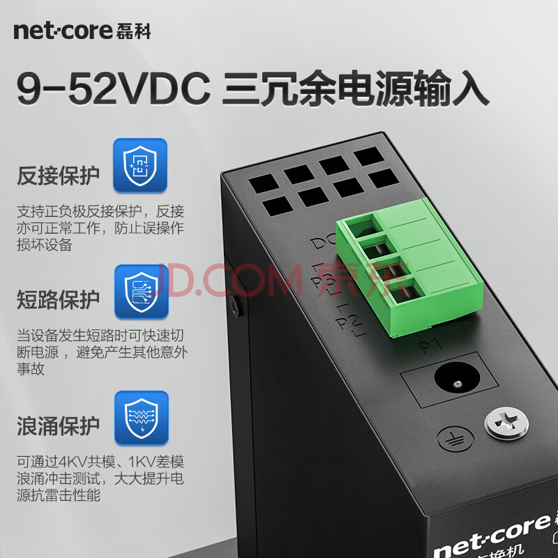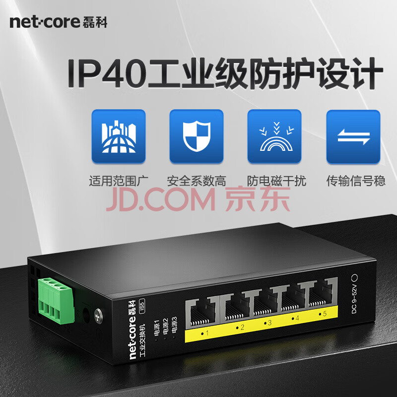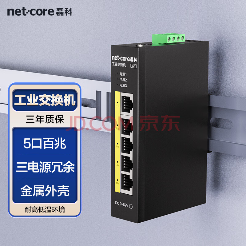 商品相册:磊科(netcore)IS5 5口百兆工业交换机 监控网络分流器分线器 企业级以太网交换器 导轨式安装第