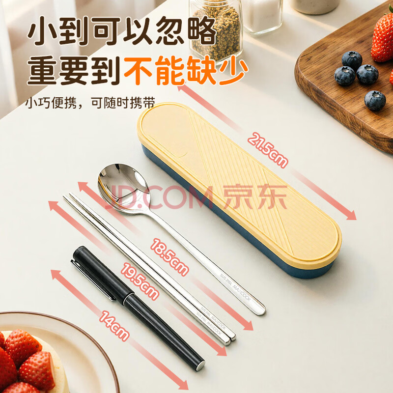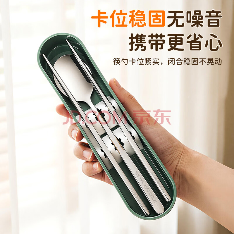 商品相册:美厨(maxcook)316L不锈钢筷子勺子餐具套装 便携式筷勺三件套 北欧绿 MCK5138第1张/共9