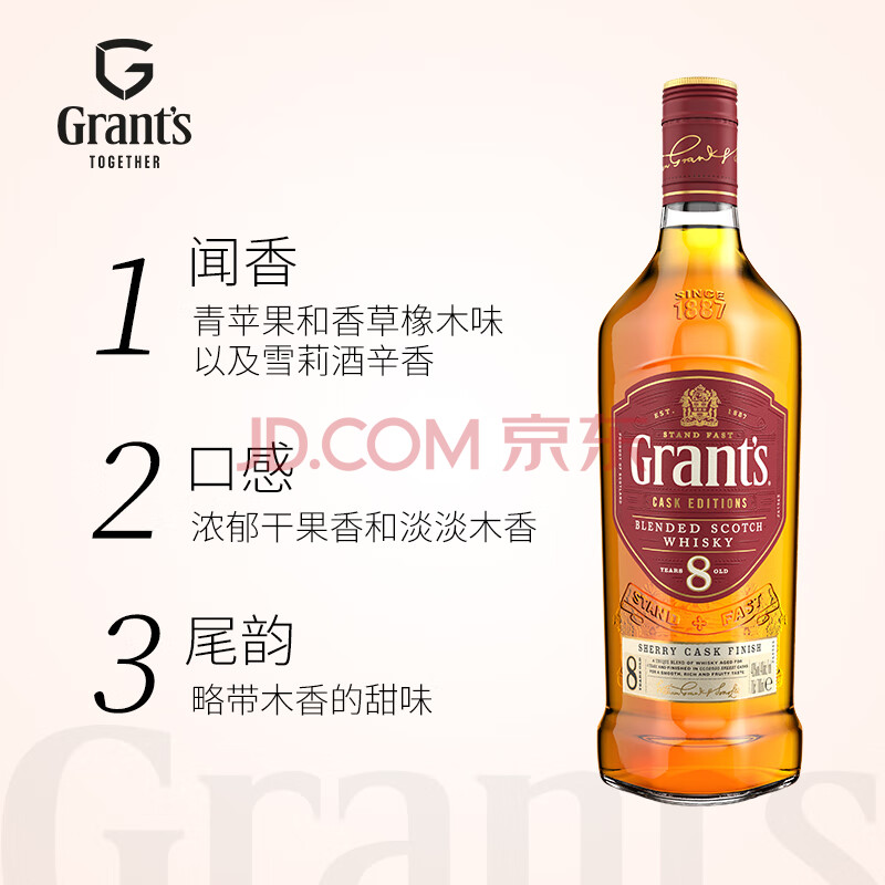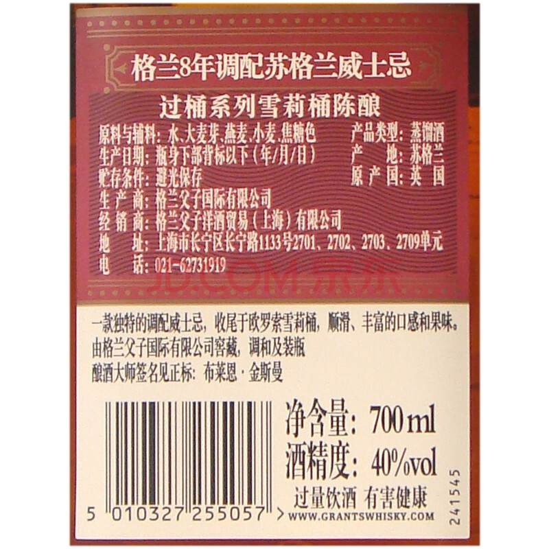 商品相册:GRANT'S格兰8年 苏格兰调和型威士忌 洋酒700ml 雪莉桶陈酿 年货礼物送礼第
