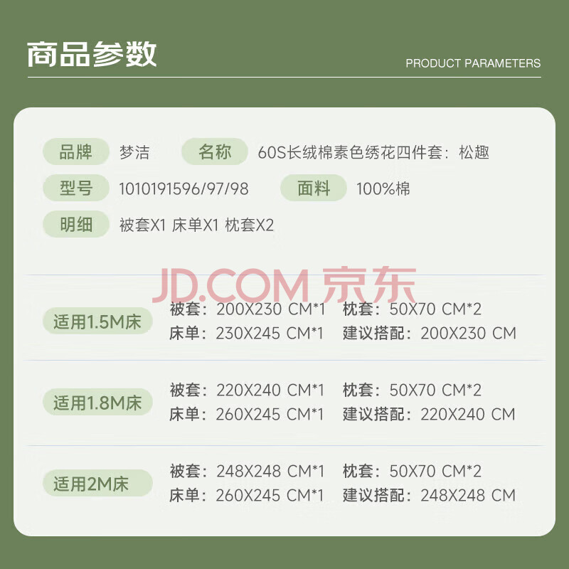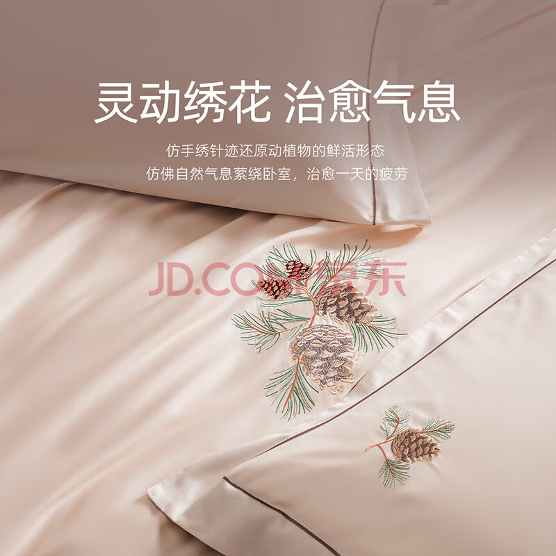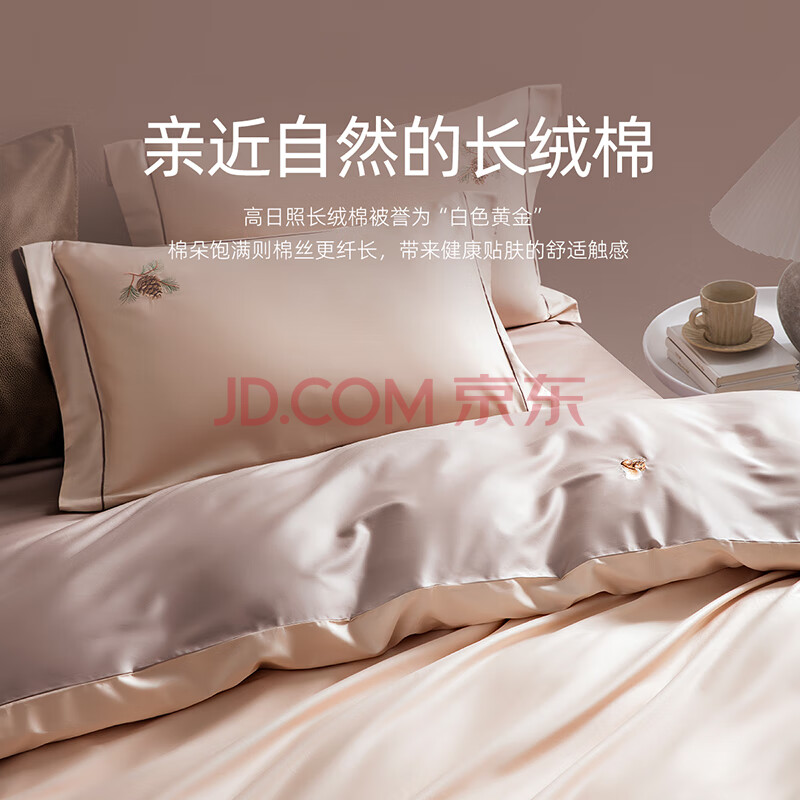 商品相册:梦洁家纺床上用品四件套纯棉60支全棉床单被罩床品长绒棉素绣贡缎2米床 被套248*248cm 松趣第