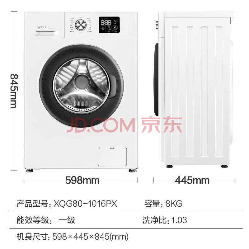 商品相册:威力 8公斤滚筒洗衣机 超薄嵌入 LED显示屏 蒸汽除菌洗 高温筒自洁 15分钟快速洗 XQG80-1016PX第1张/共7