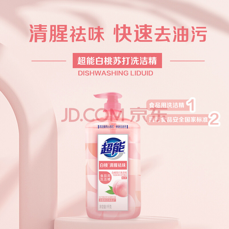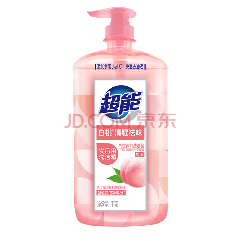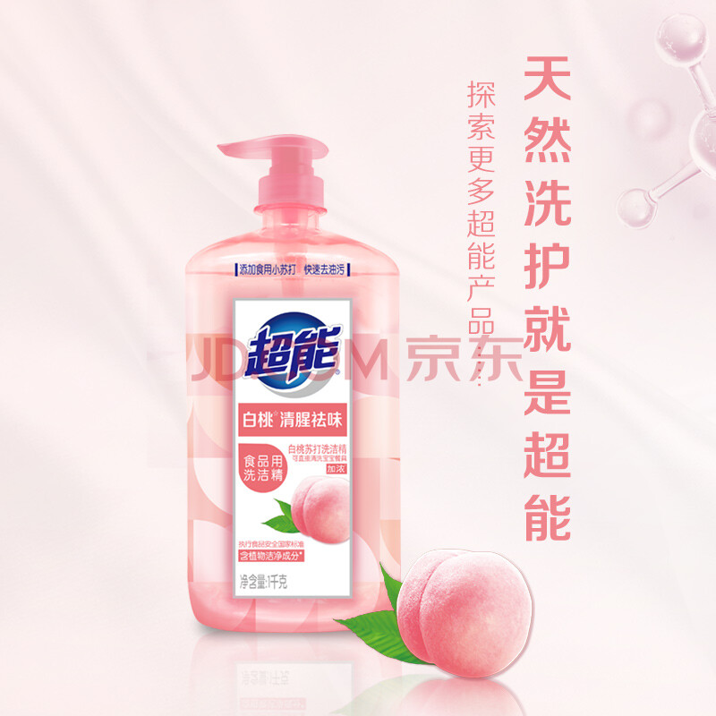 商品相册:超能白桃苏打洗洁精1kg清新祛味 APG植物洁净成分 快速去油第