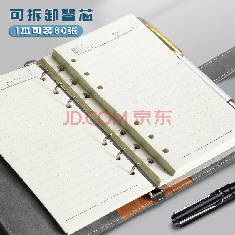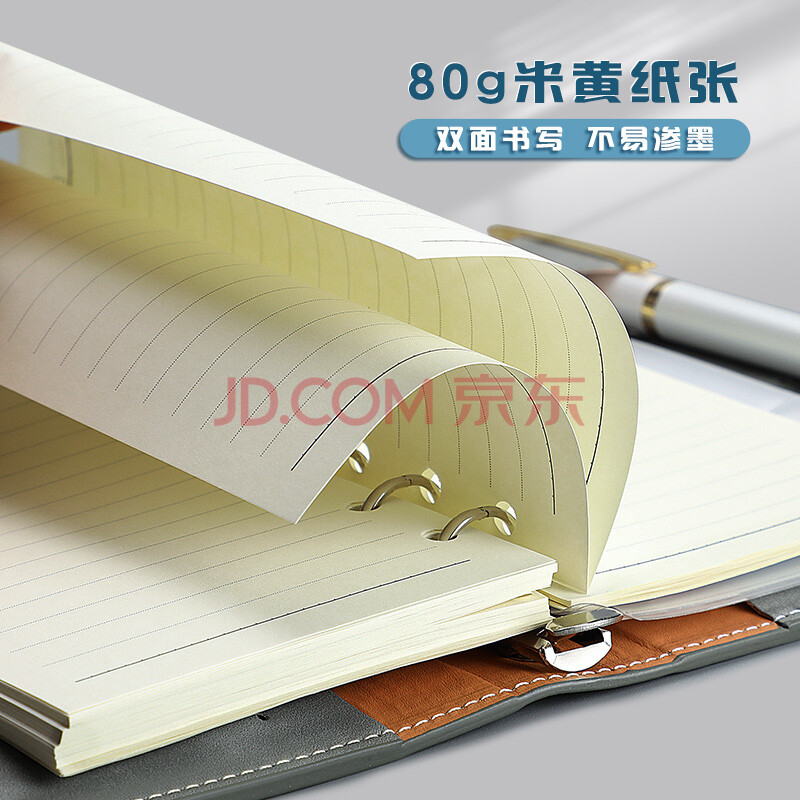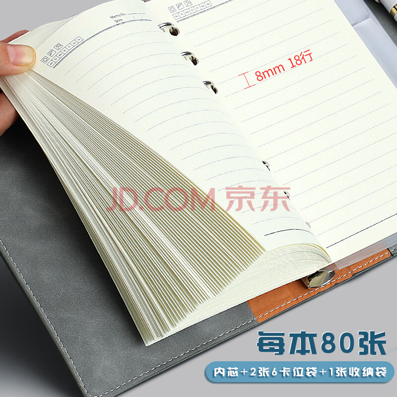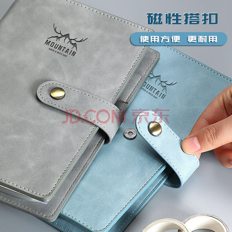 商品相册:嘉然恒 A6多功能活页本创意小号手账本笔记本本子便携记事本拉链收纳本皮面搭扣本定制 卡其色1本 第
