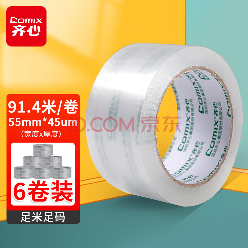 商品相册:齐心(COMIX)(Comix)透明胶带/宽胶带/封箱胶带 快递打包胶带 6卷 宽55mm*100y*45um长91.4米/卷 JP5510-6第