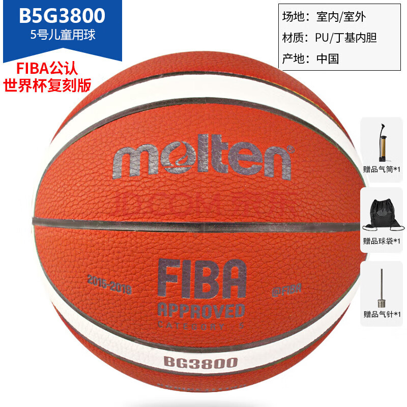 商品相册:摩腾(molten)5号篮球B5G3800 FIBA国际篮联公认少年儿童室内外比赛训练BG3800第