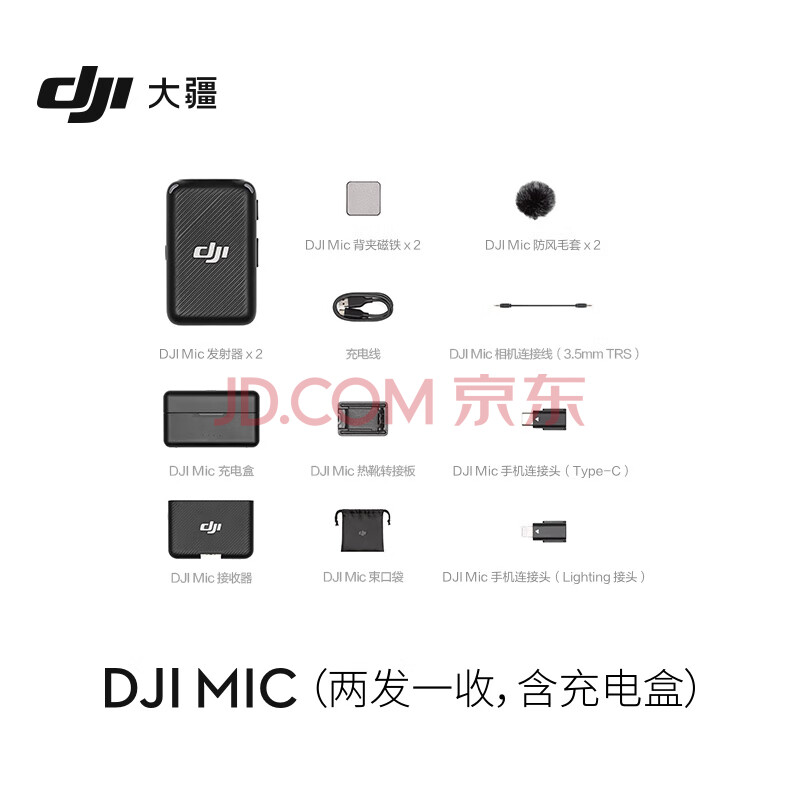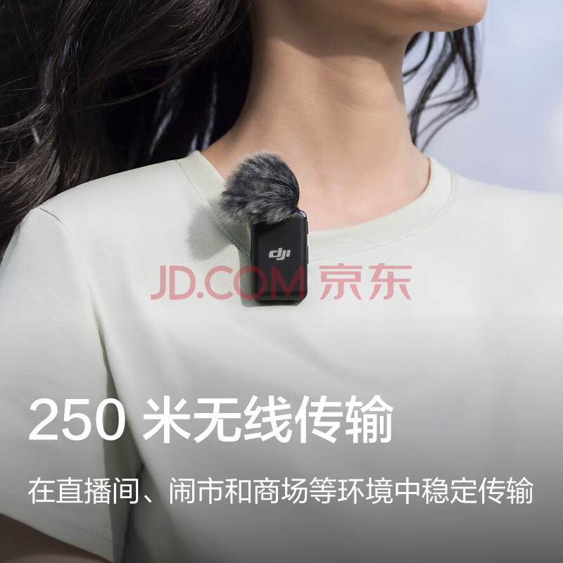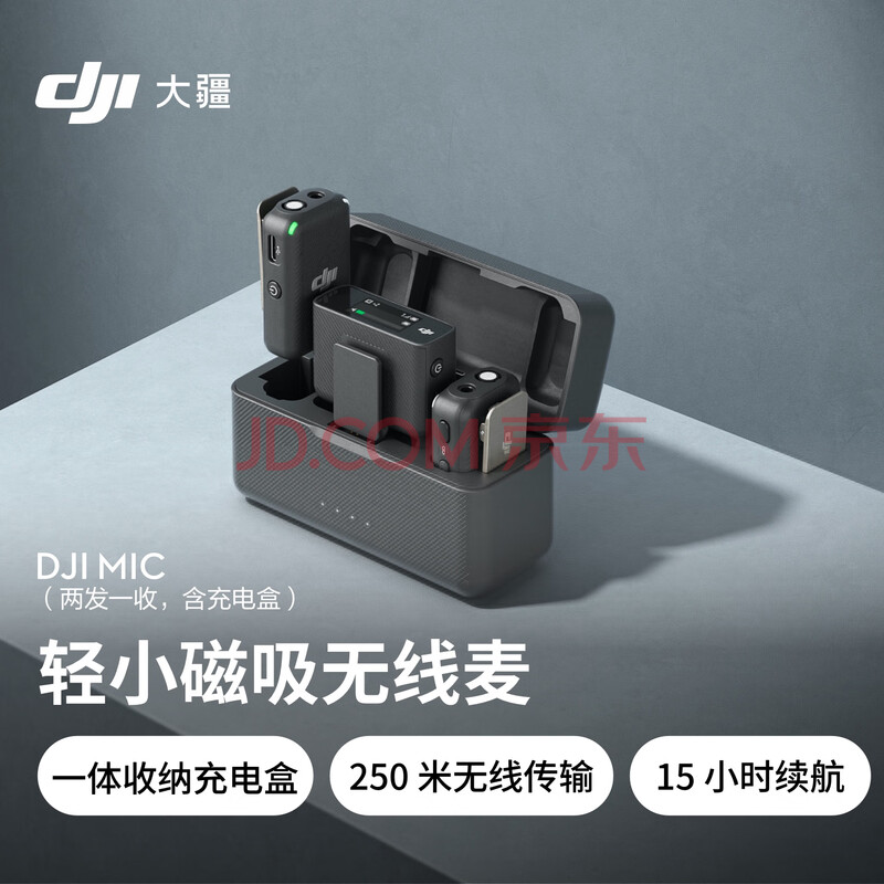 商品相册:大疆 DJI Mic 无线麦克风 一拖二无线领夹麦克风 手机相机采访vlog直播录音收音麦第1张/共5