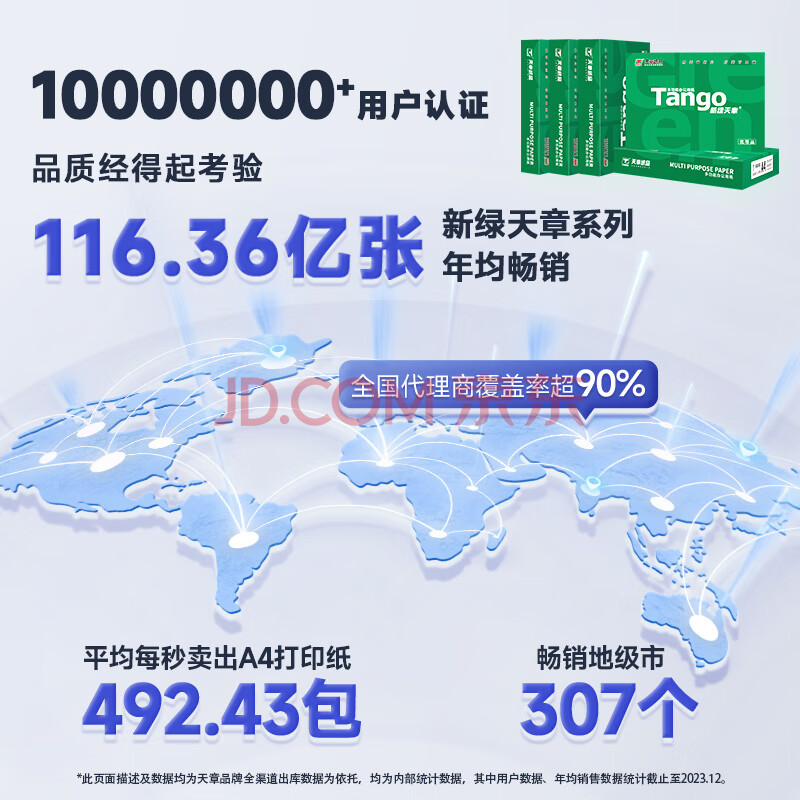 商品相册:天章 (TANGO)新绿天章A4打印纸 70g 500张*5包【豪华品质】双面打印复印纸 纸张洁白顺滑不卡纸 整箱2500张第