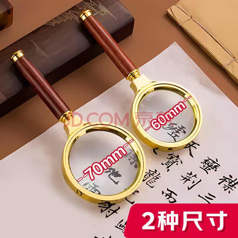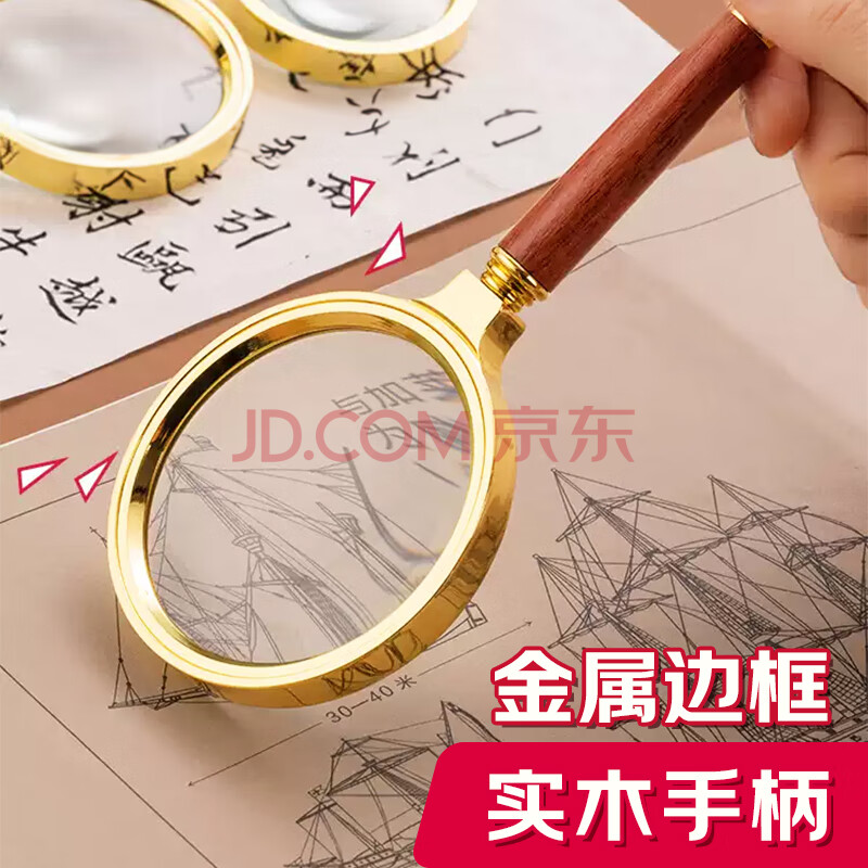 商品相册:得力复古金属框木质手柄架放大镜 直径60mm第