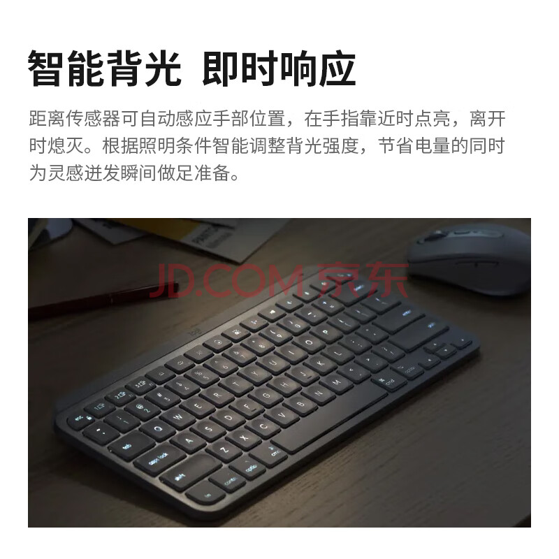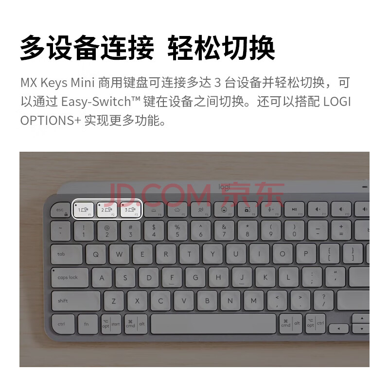 商品相册:罗技(Logitech)大师系列 MX Keys Mini无线蓝牙键盘 高端办公智能背光 带接收器 商用版 浅灰色 79键第