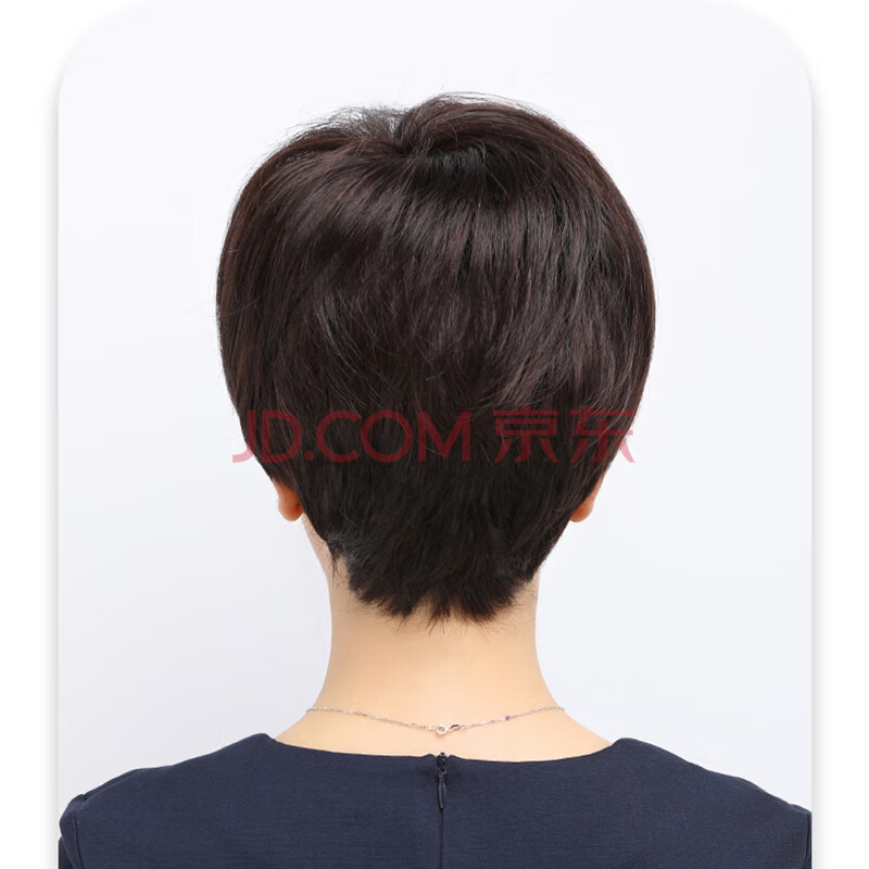 商品相册:佰丝堂假发女短发全头套式短直发中老年妈妈整顶发套真发混丝(深棕色)第