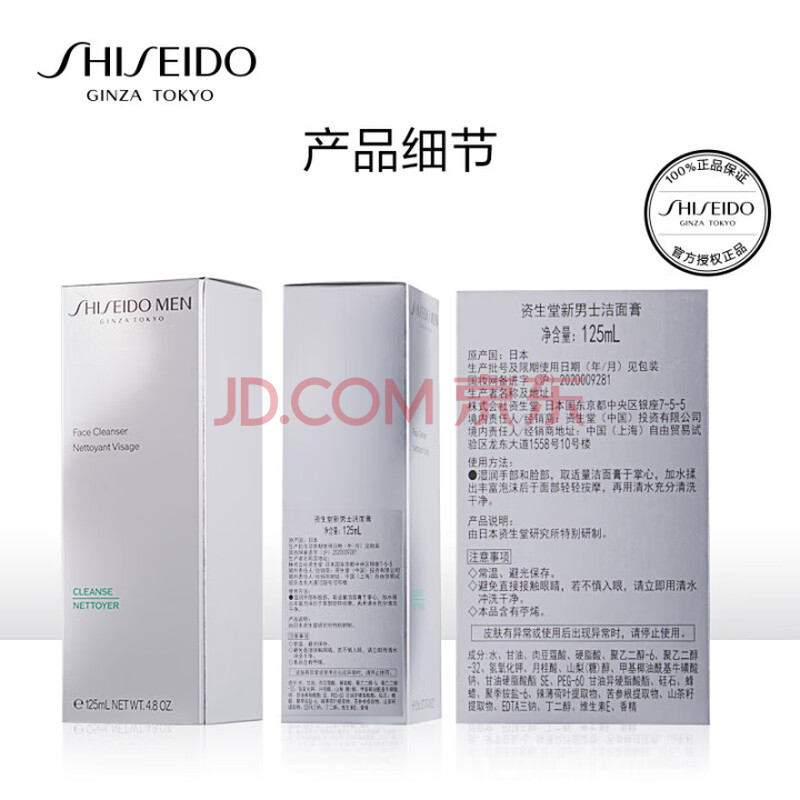 商品相册:资生堂(SHISEIDO)男士洁面膏125ml 收缩毛孔控油平衡保湿洗面奶 生日礼物送男友第