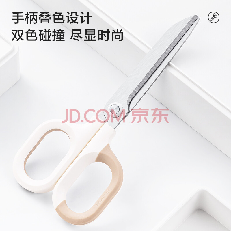 商品相册:得力小号弧形剪片省力剪刀 德国创意设计 主副双拼色设计办公文具/家用 白色NS056第