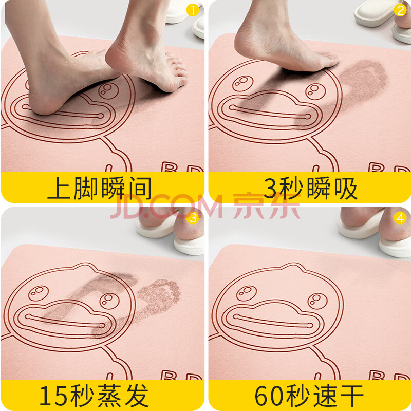 商品相册:大江小黄鸭正版联名硬硅藻泥吸水地垫浴室门口脚垫卫生间地垫39x60cm第1张/共4