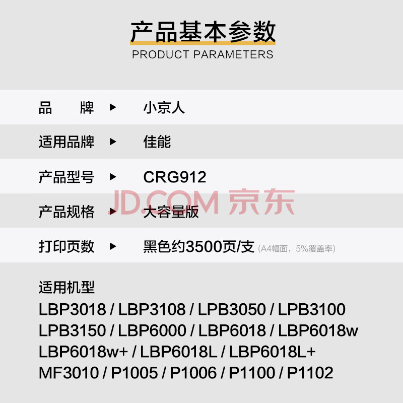 商品相册:小京人CRG912大容量硒鼓2支装 适用佳能MF3010 LBP3018 3050 LBP6018 CRG925 惠普HP P1102 M1132 CE285A粉盒第