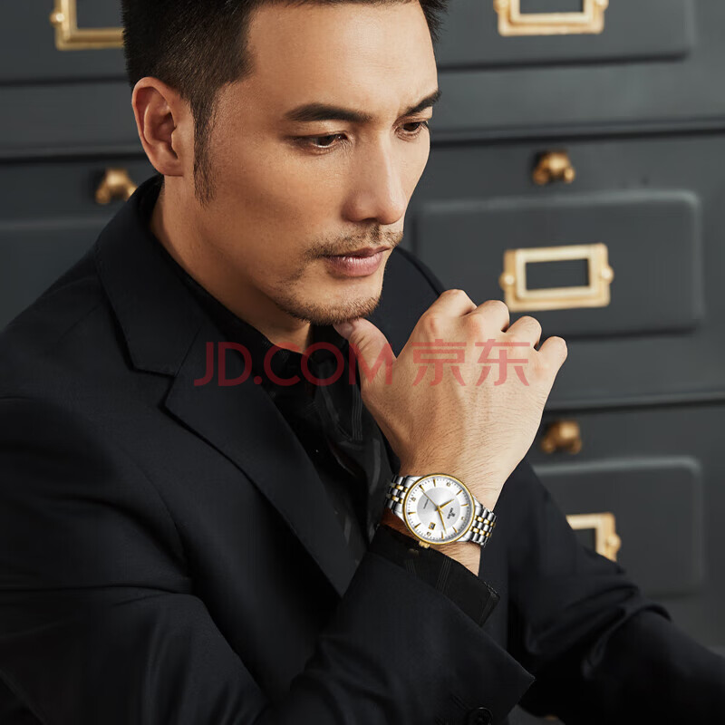 商品相册:依波(EBOHR)手表男 大师系列节日礼物自动机械钢带情侣表间金男表36480319第