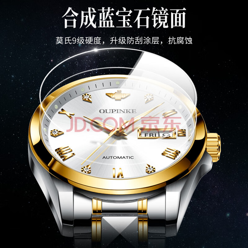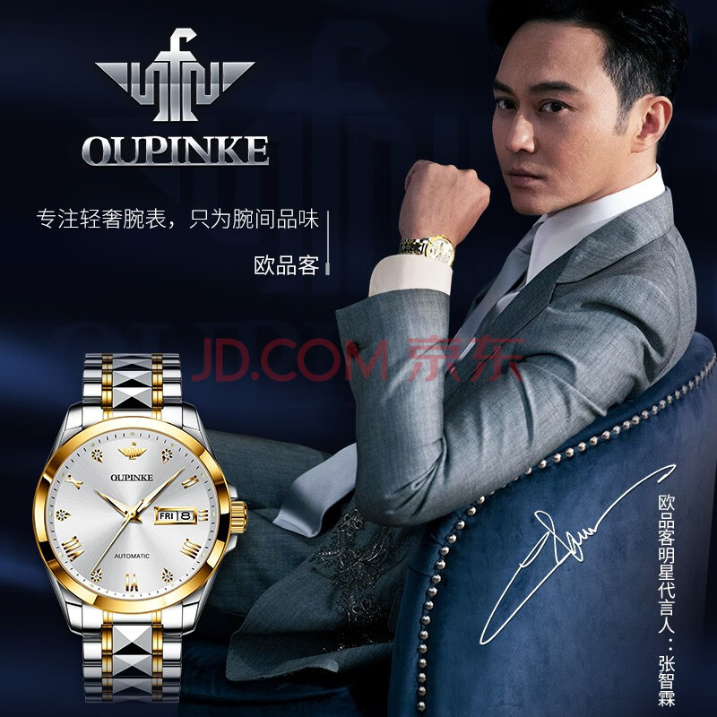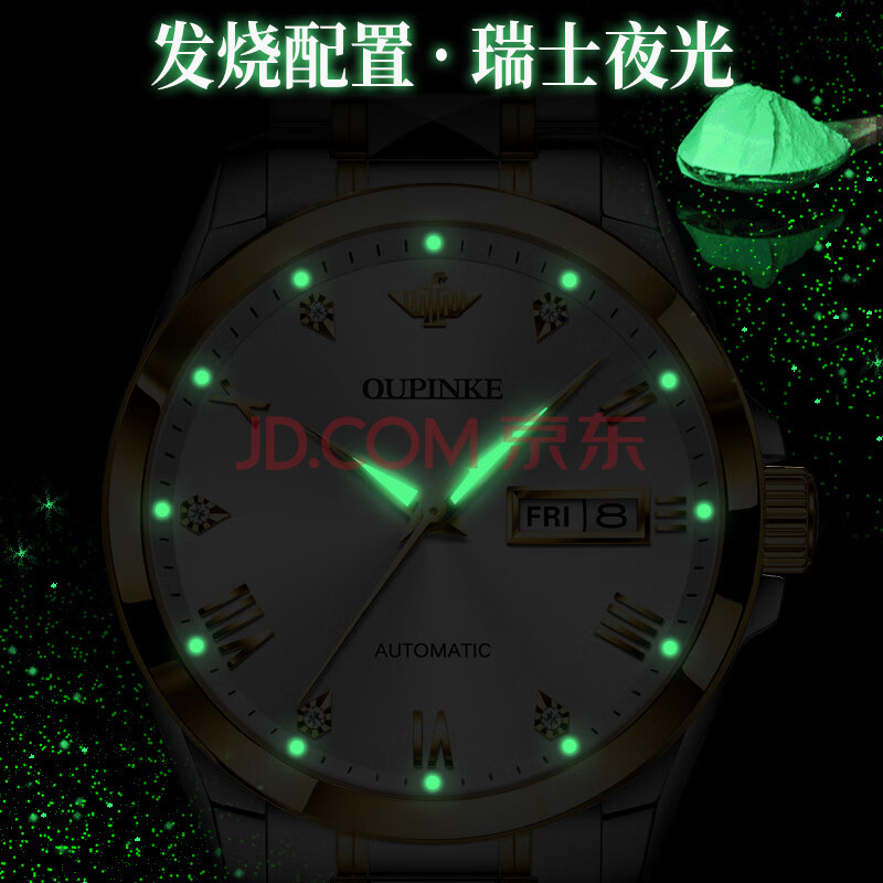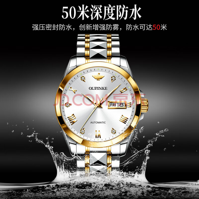 商品相册:欧品客手表男士机械表全纯自动生日礼物简约夜光防水名表瑞士认证品牌第