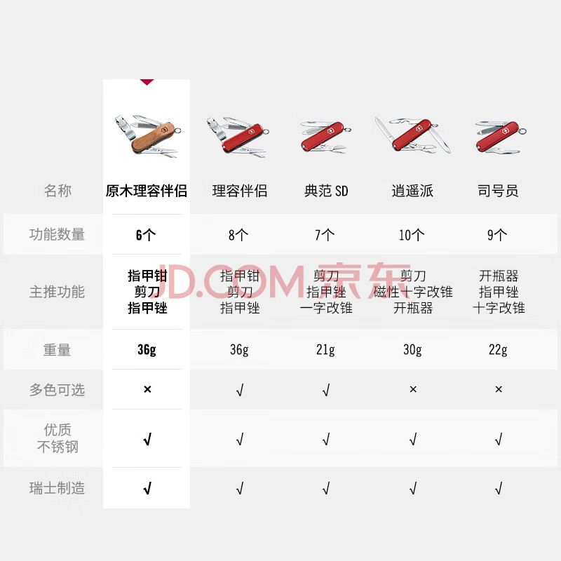 商品相册:维氏瑞士军刀理容伴侣6项多功能水果刀刀折叠刀胡桃木0.6461.63第