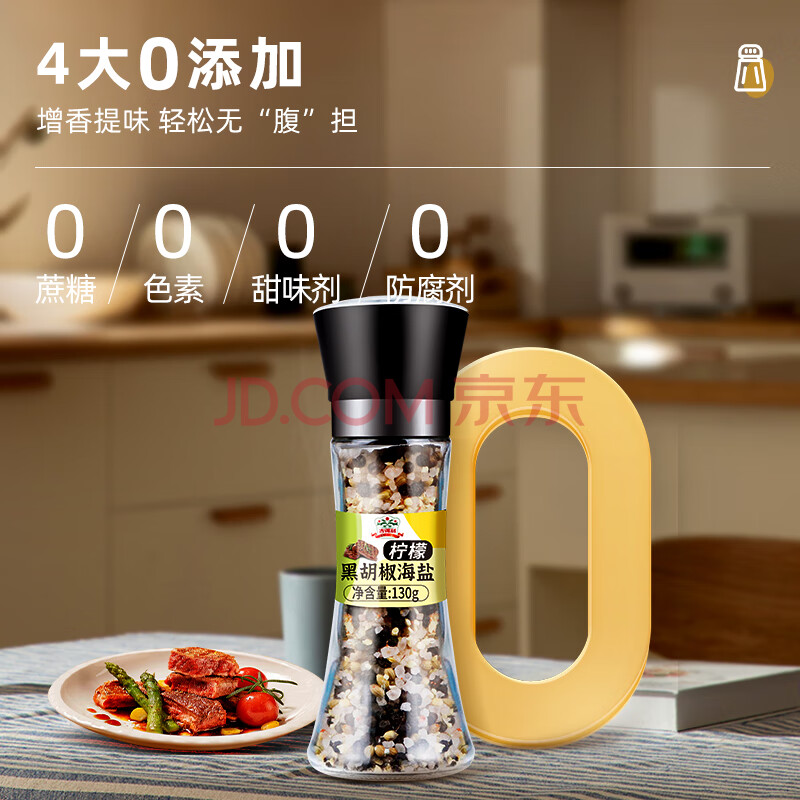 商品相册:吉得利柠檬海盐黑胡椒粒研磨瓶130g 低脂轻食牛排鸡胸肉健身餐烧烤调料 第
