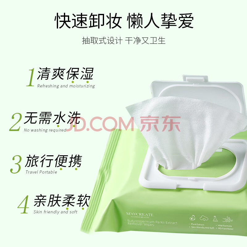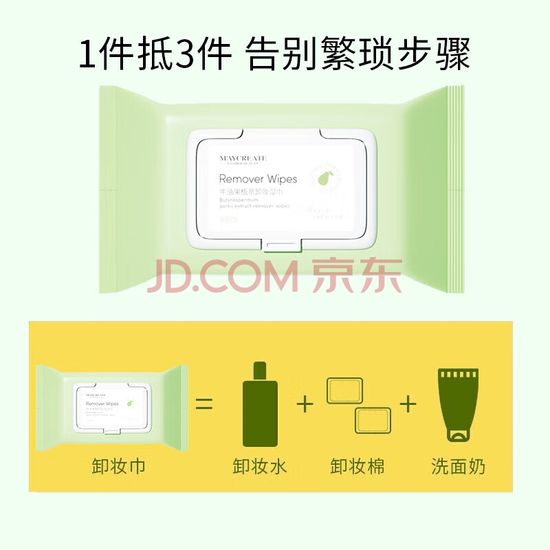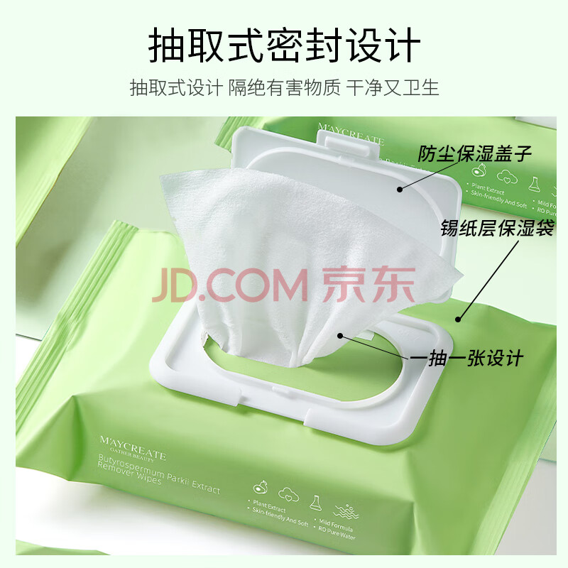 商品相册:健美创研牛油果卸妆湿巾 深层清洁眼唇妆脸部 温和一次性独立包装便携旅行第