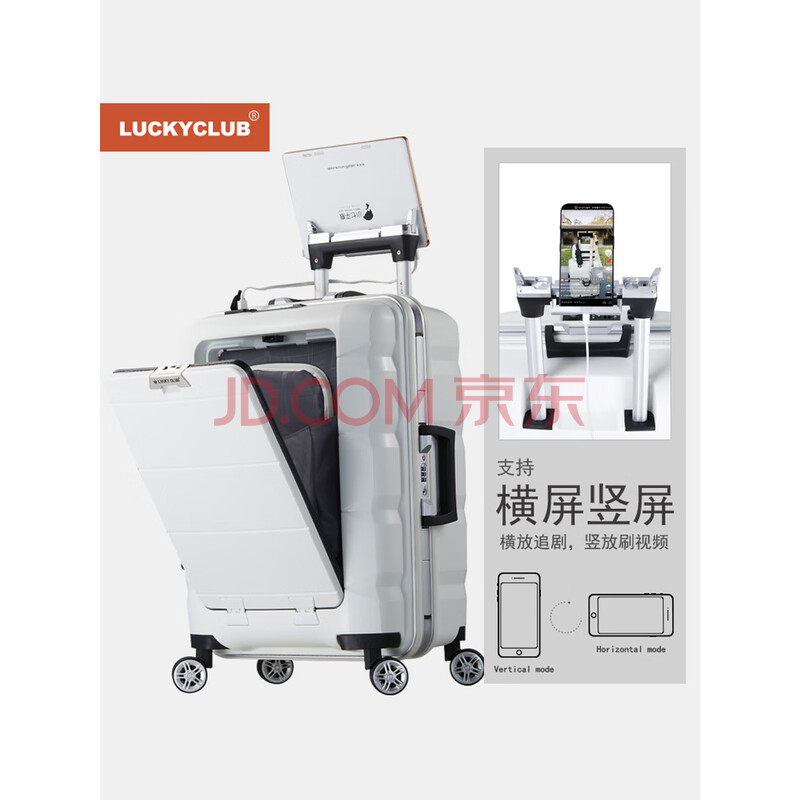 商品相册:LUCKY CLUB 行李箱男女铝框拉杆箱商务旅行前置开口小型登机子母箱子20英寸第