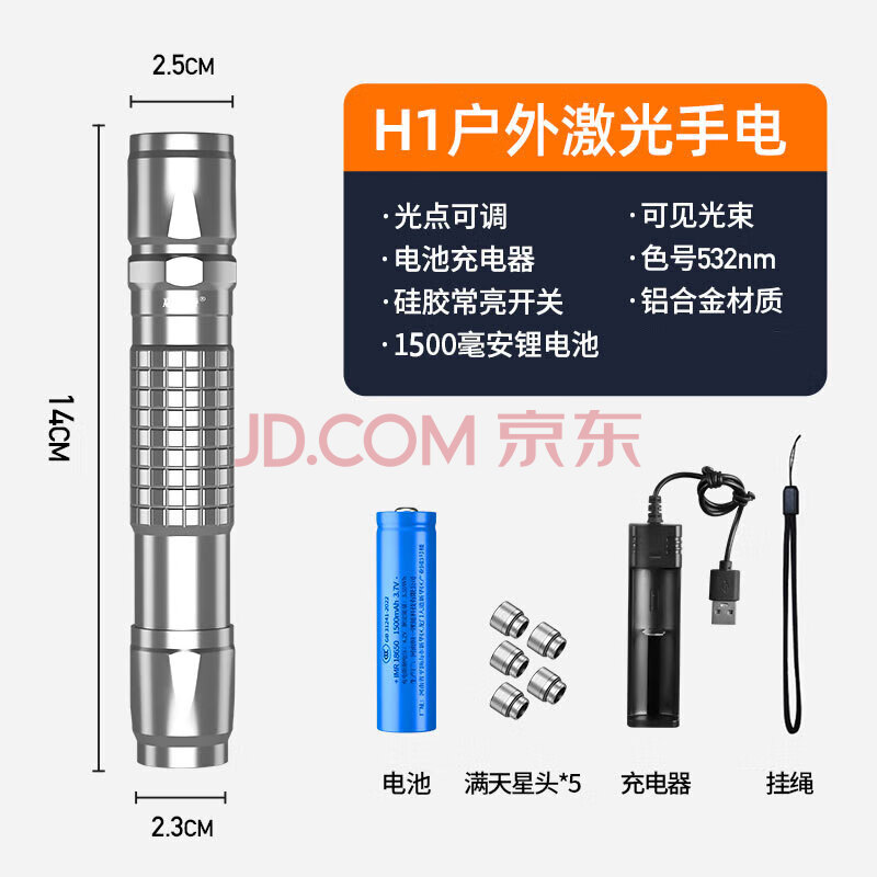 商品相册:惠斯特H1绿光激光笔银色户外专用大功率售楼沙盘笔可常亮尾部开关天文教学指星笔会议液晶屏用红外线射笔第