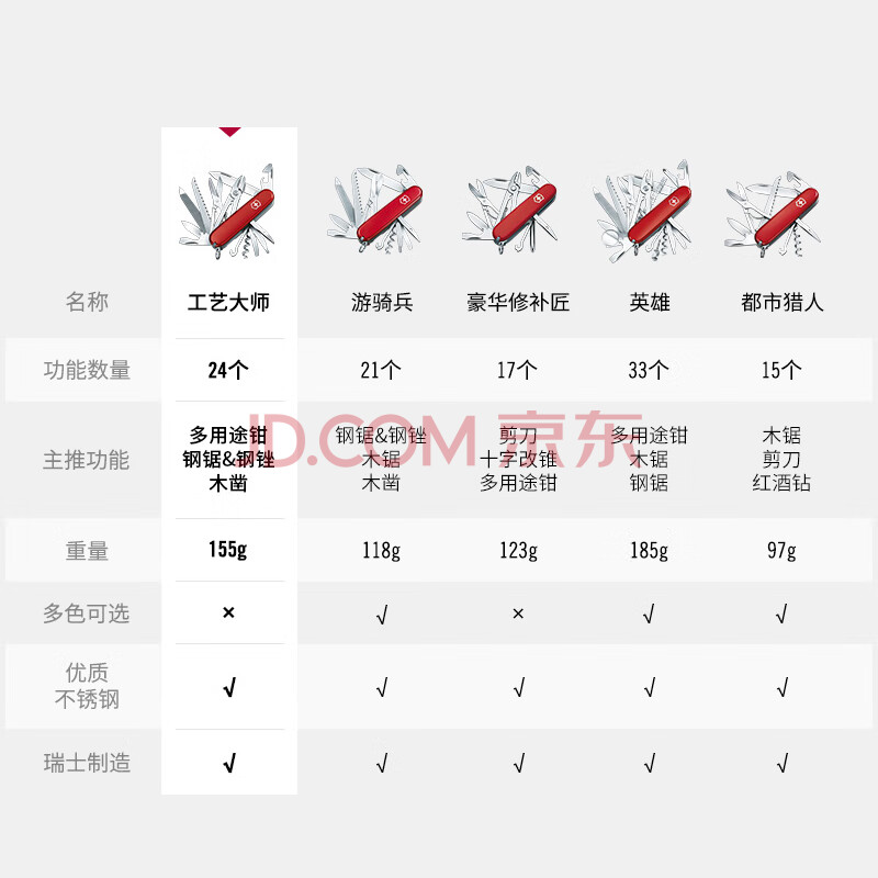 商品相册:维氏瑞士军刀工艺大师24项多功能水果刀刀折叠刀红色1.3773第