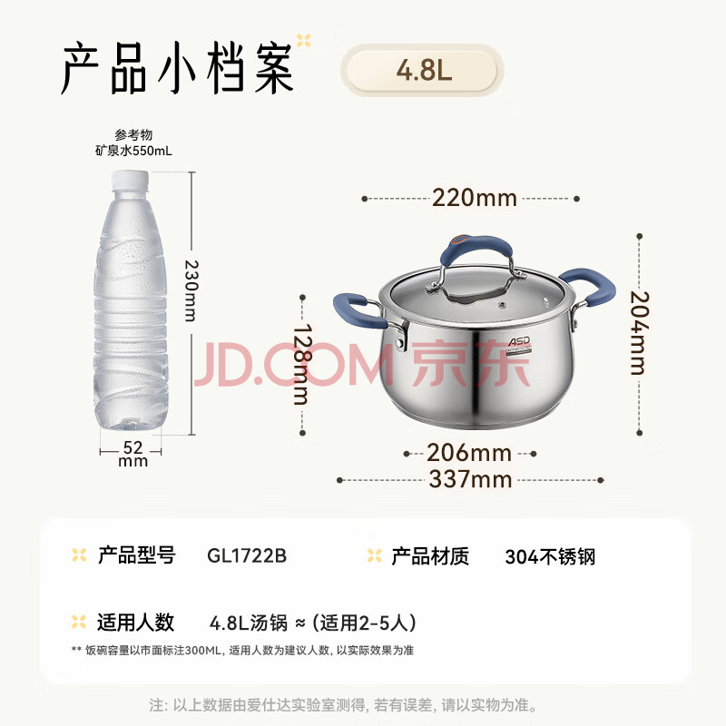 商品相册:爱仕达(ASD)汤锅 304不锈钢蒸锅C味黛丽舍系列炖煮22CM燃气电磁炉通用GL1722B第