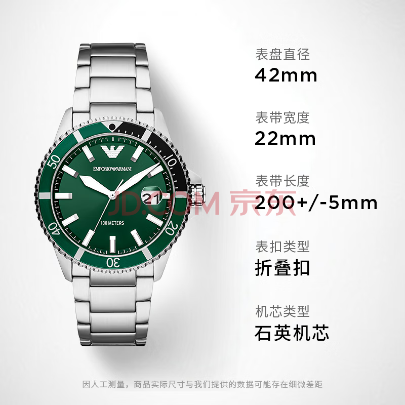 商品相册:EMPORIO ARMANI阿玛尼手表男士 绿水鬼系列潮流钢带石英表生日礼物送男友AR11338第