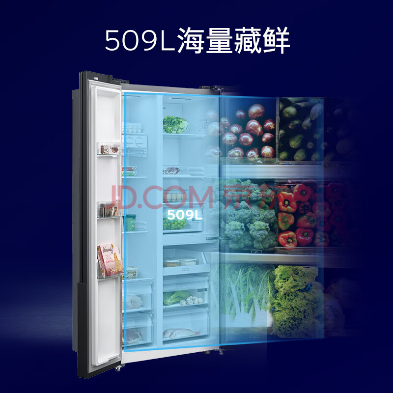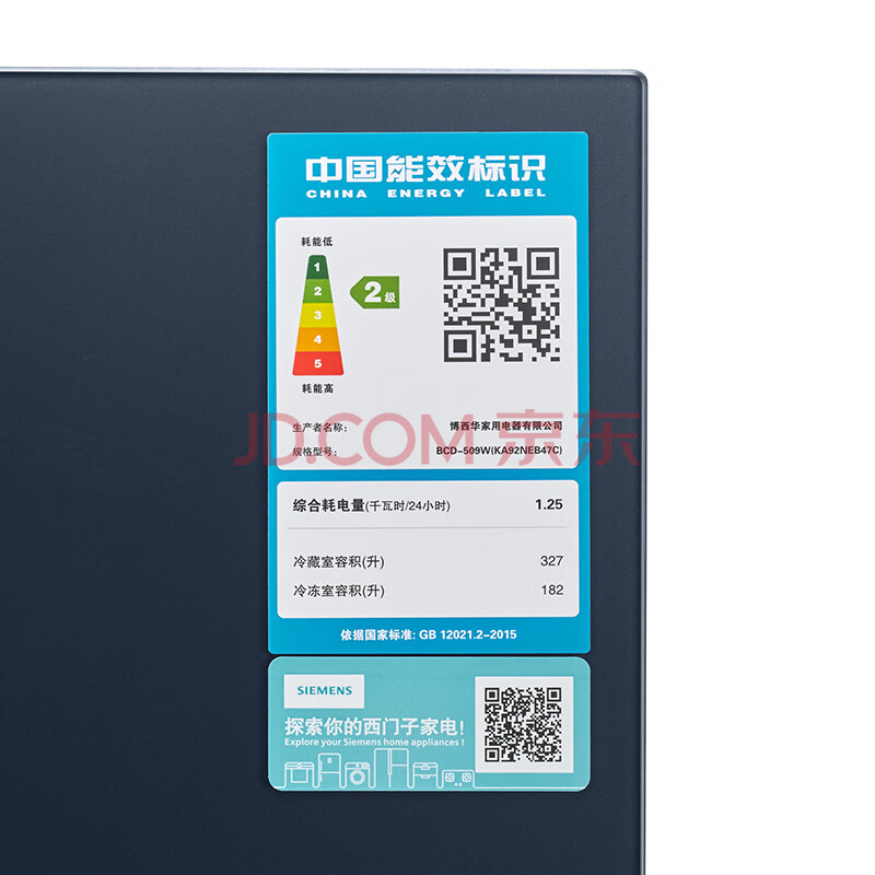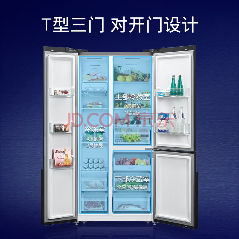 商品相册:西门子(SIEMENS)纤薄款509L对开门冰箱 大容量 风冷无霜 分区精储 湖蕴蓝 BCD-509W(KA92NEB47C)【专】第