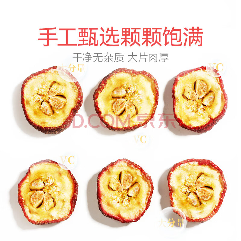 商品相册:贡苑特级纯山楂干片500g 大果山楂干无熏硫茶干新鲜干制山楂 泡水喝第