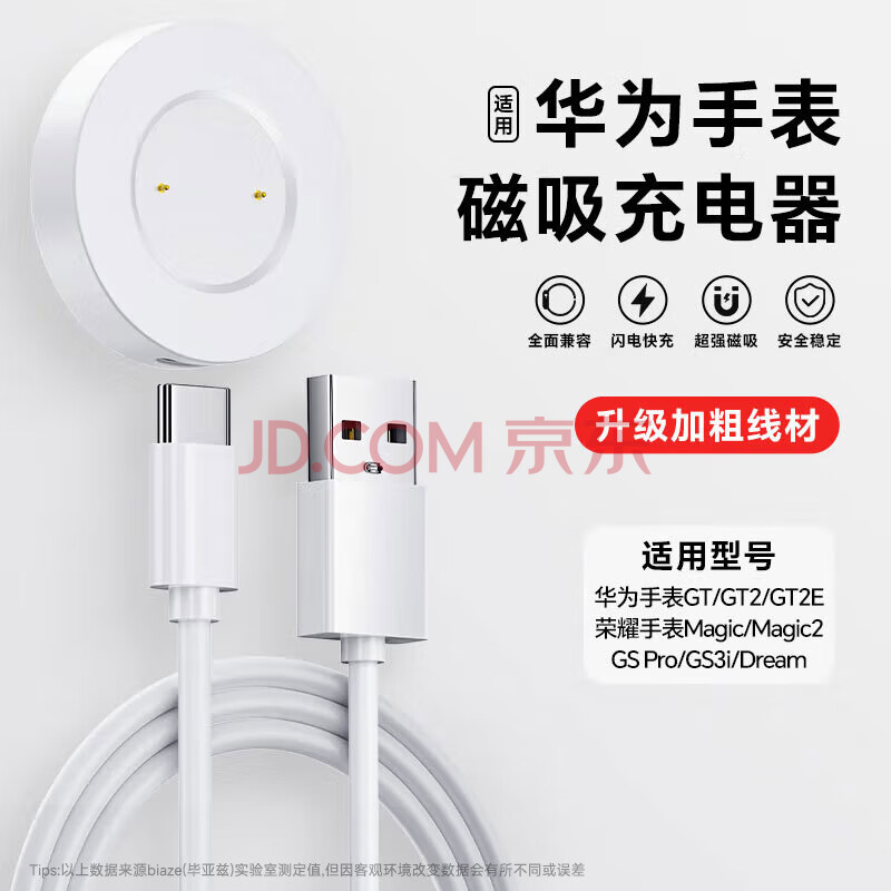 商品相册:毕亚兹适用华为手表充电器Watch GT/GT2/GT2E荣耀Magic/Magic2/GS Pro/GS3i/Dream手环无线快充电线配件第
