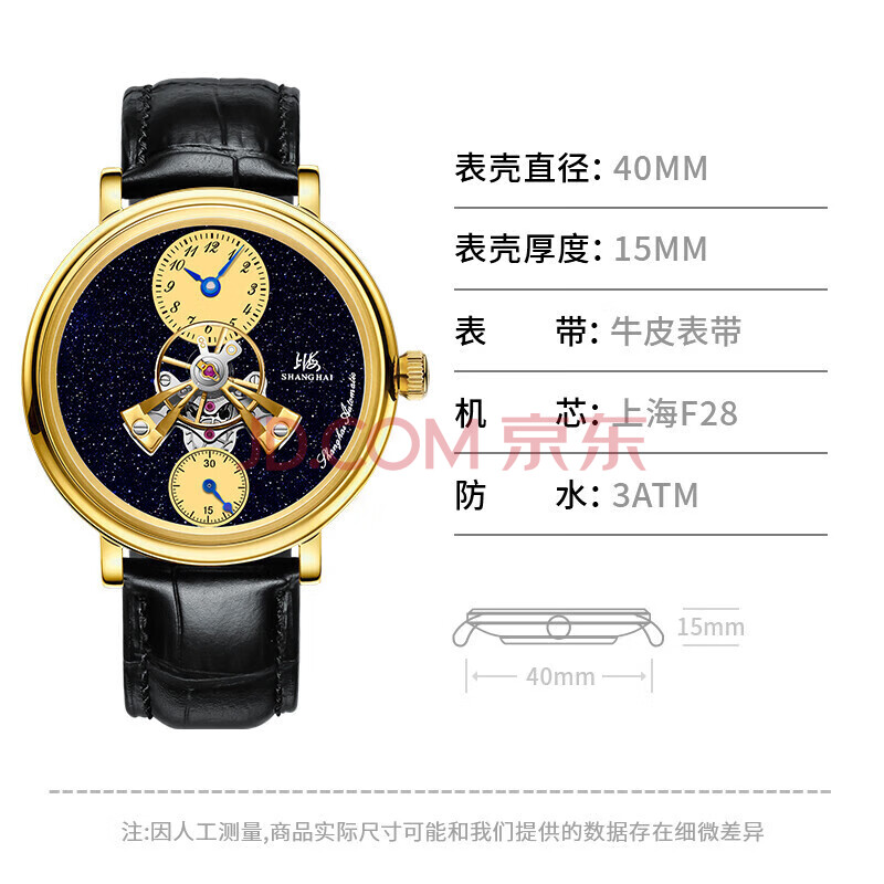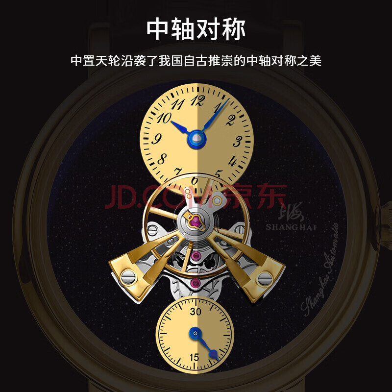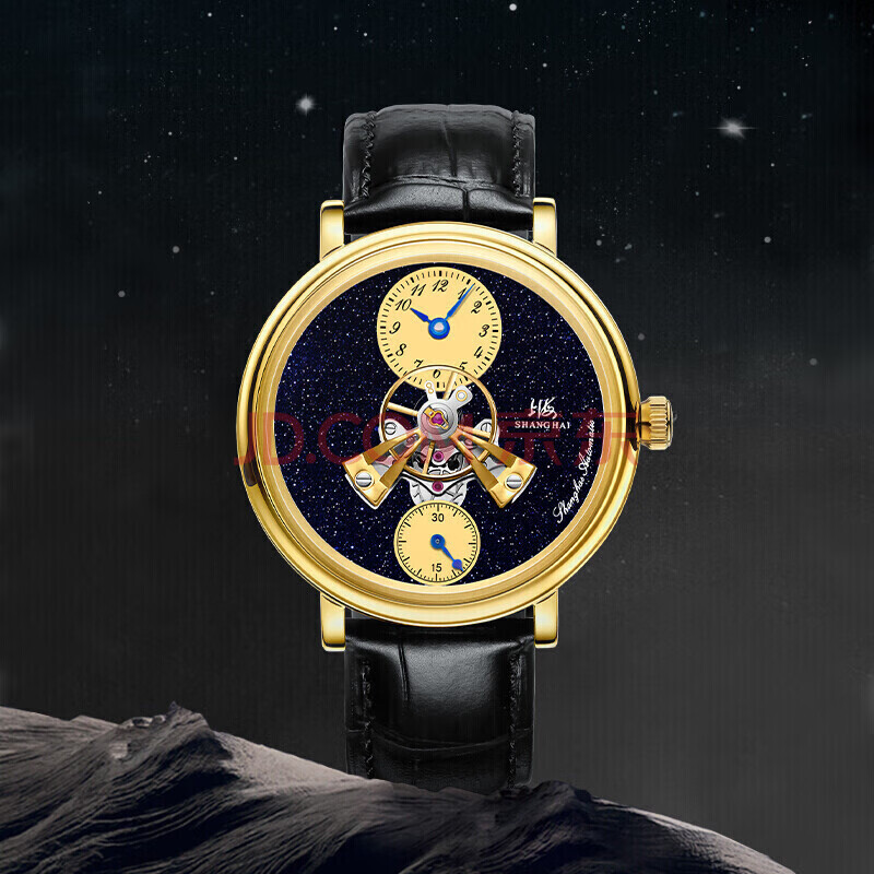 商品相册:上海(SHANGHAI)手表男款 大都会系列 小秒盘男士自动机械飞轮星空男表 865-2-F28第
