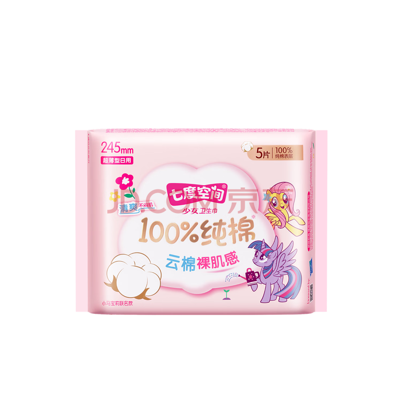 商品相册:七度空间少女超薄卫生巾100%纯棉亲肤透气姨妈巾245mm*5片【新国标认证】第