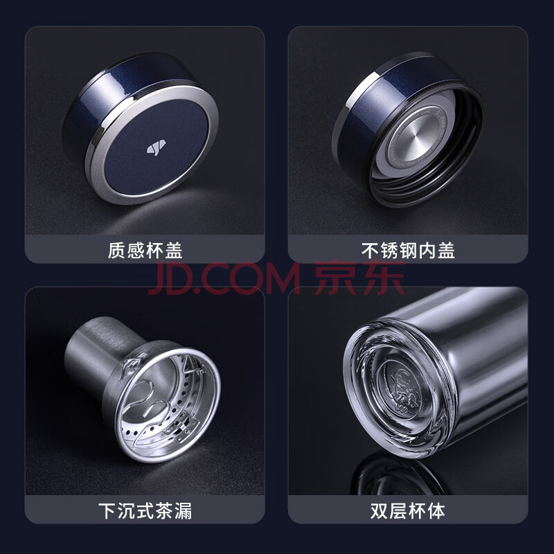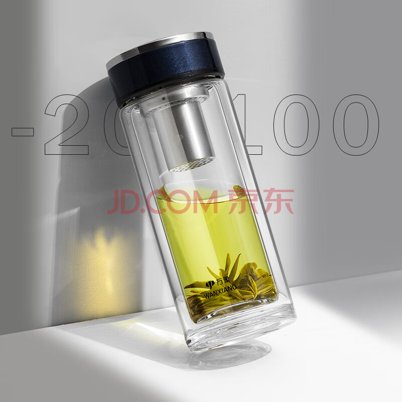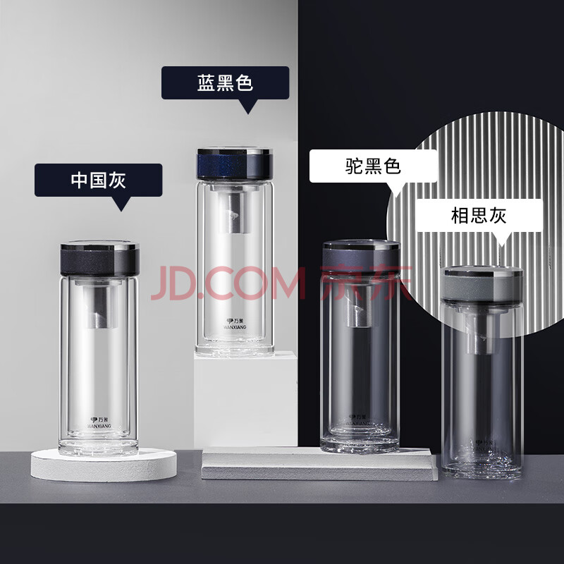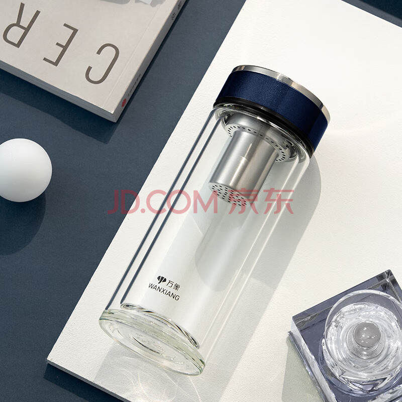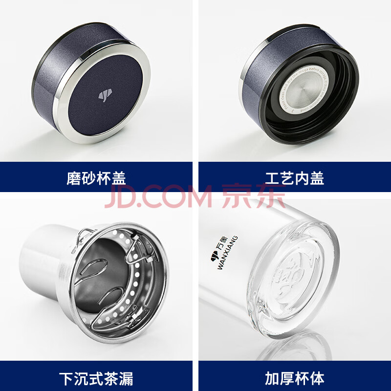 商品相册:万象(WANXIANG)双层玻璃杯V33RL时尚便携礼盒装蓝黑色泡茶杯480ML居家带滤网水杯第