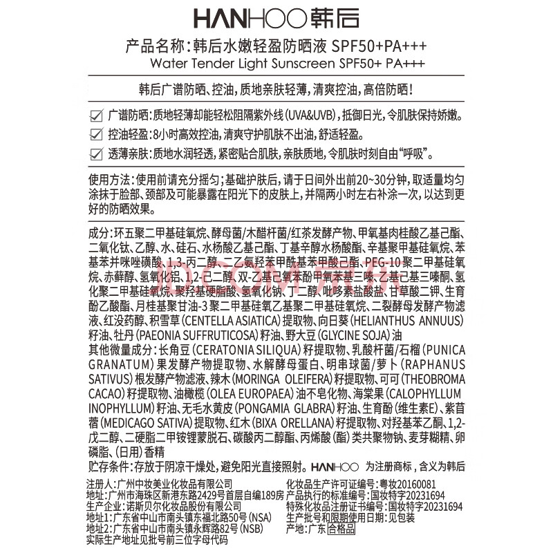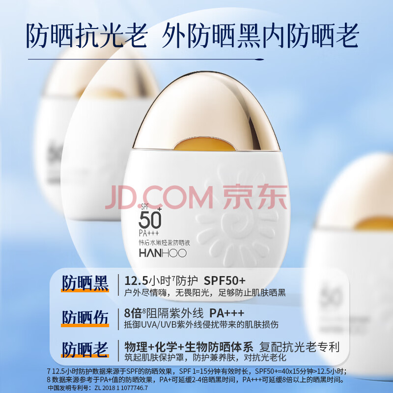 商品相册:韩后水嫩轻盈防晒霜乳液SPF50+50g 美白保湿隔离紫外线男女旅行太阳蛋第