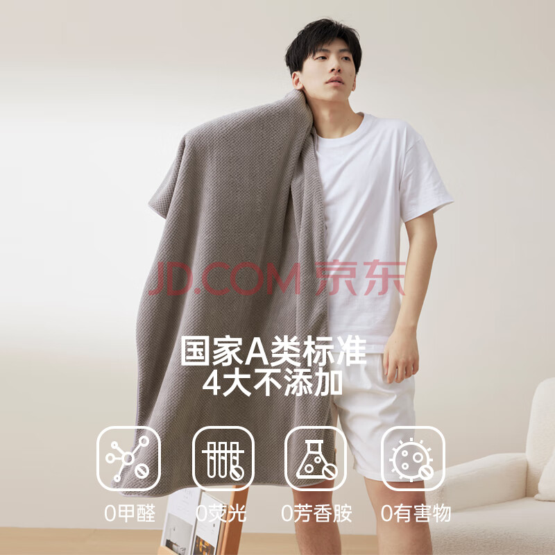 商品相册:三利加大7A抗菌浴巾A类吸水速干成人男女士裹巾 90*180cm 460G天空灰第