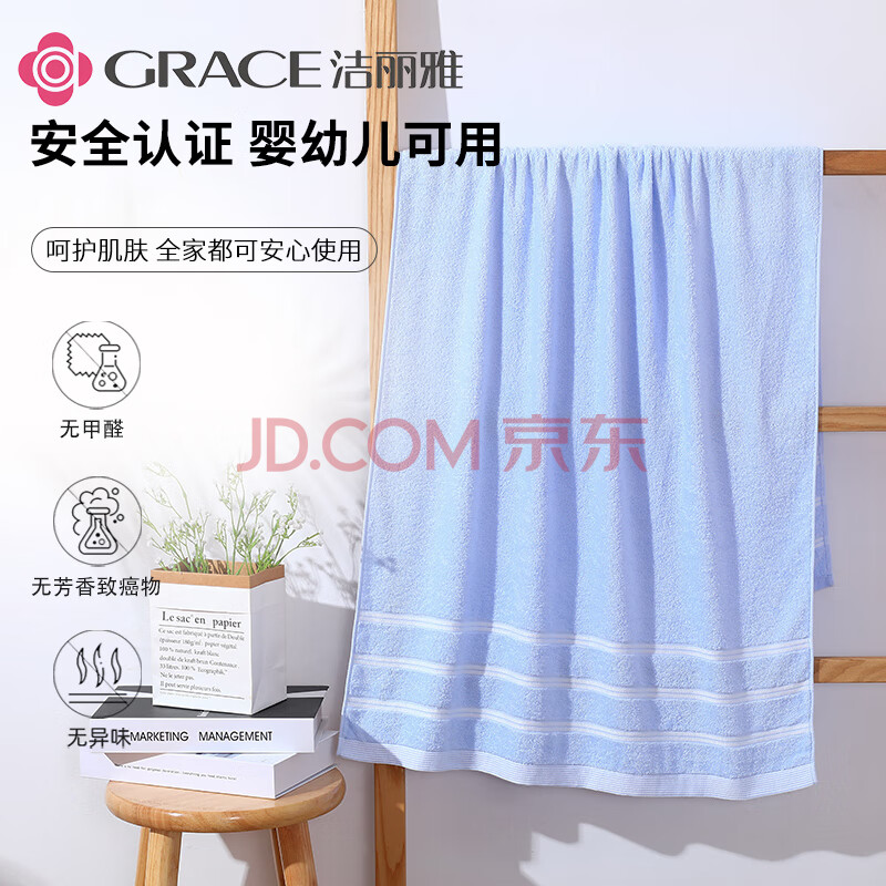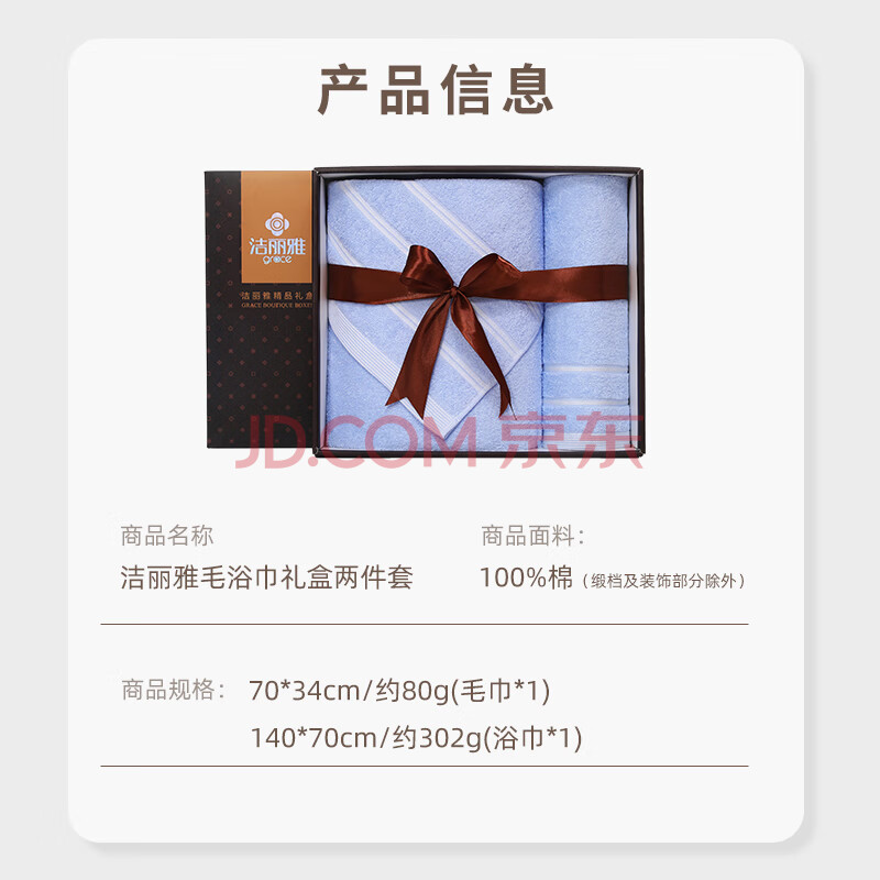 商品相册:洁丽雅3A抗菌长绒棉毛浴巾礼盒 纯棉伴手礼送礼套装可支持绣字第
