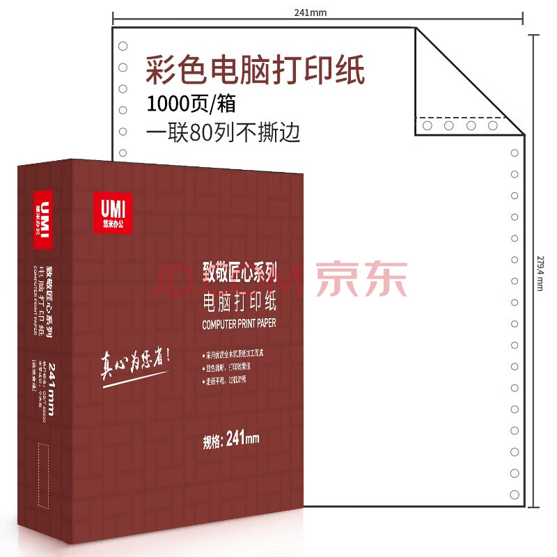 商品相册:安兴一联整张不撕边电脑打印纸针式打印纸单据票据(241-1S色序:白1000页/箱)第