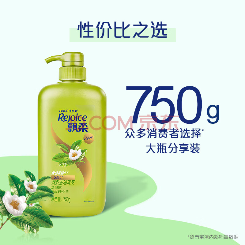 商品相册:飘柔蓬松洗发水去油男士女士日常护理家庭装绿茶精华洗发露膏750g第