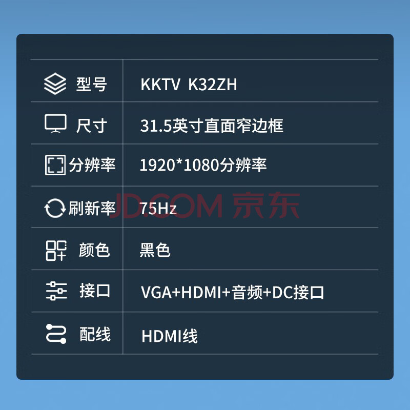 商品相册:KKTV31.5英寸 办公显示器 75Hz 微边框 广视角 低蓝光爱眼 可壁挂 家用电脑显示屏 K32ZH第