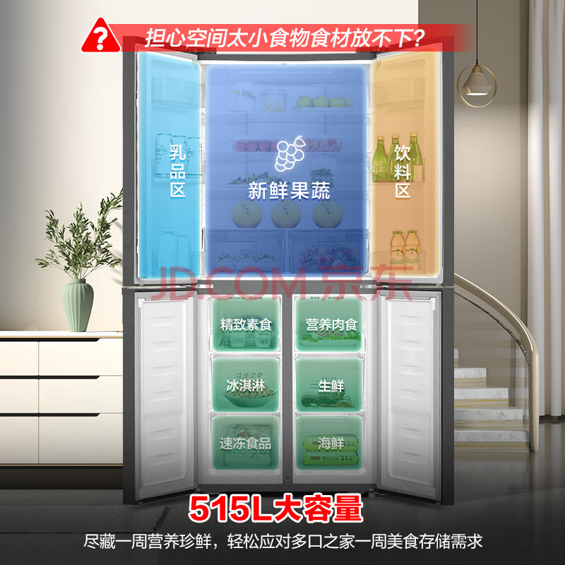 商品相册:容声515升变频一级能效十字对开门四开门电冰箱家用风冷无霜大容量节能净味BCD-515WD12FP星韵第