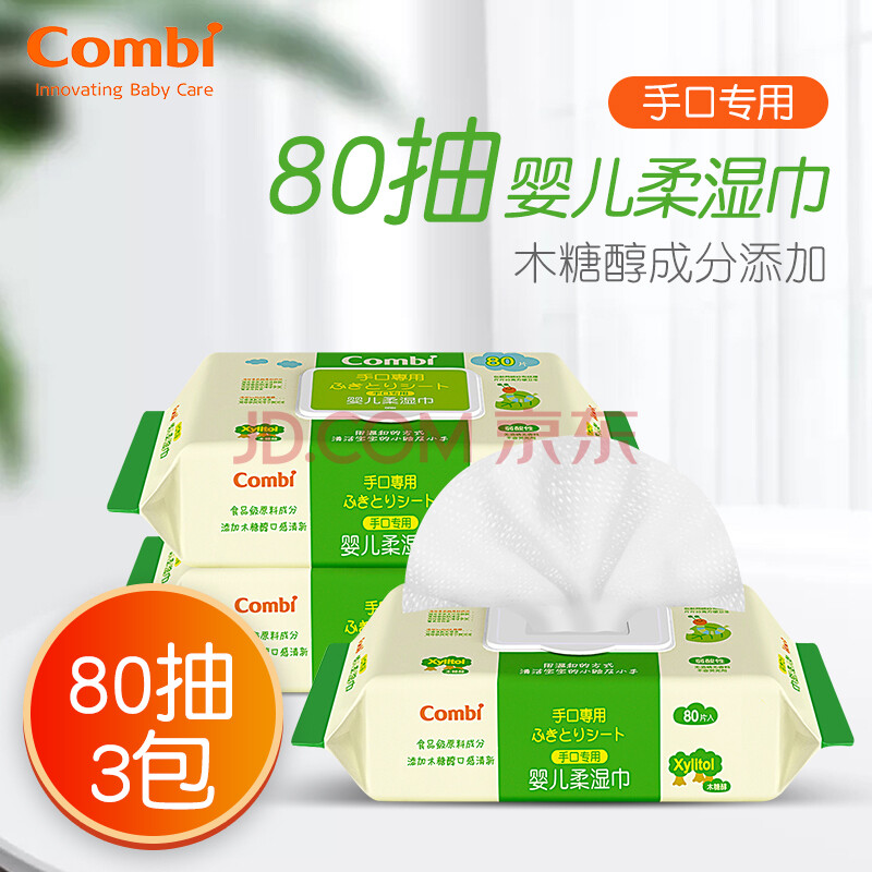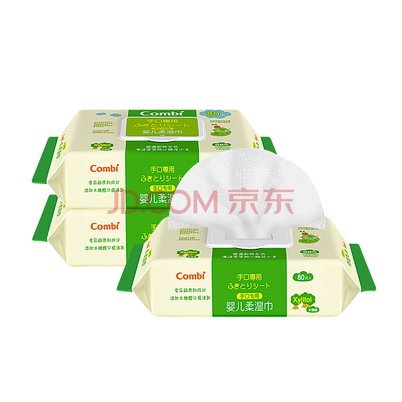 商品相册:康贝(Combi)湿巾婴儿手口专用柔湿巾宝宝湿纸巾 80片*3包婴童适用第