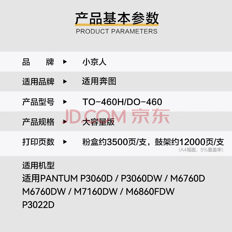 商品相册:小京人TO-460粉盒适用奔图p3022d硒鼓PANTUM P3060 M6760D M6760DW M7160DW M6860FDW系列打印机粉盒第