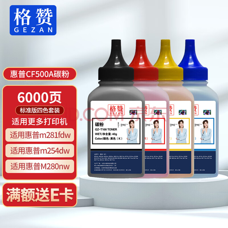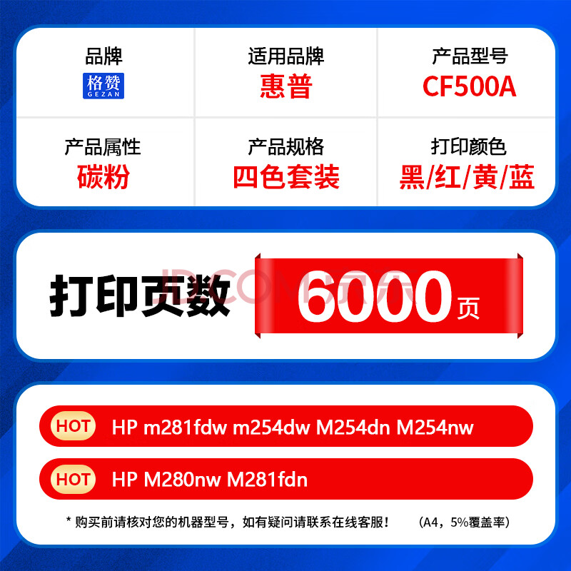 商品相册:格赞CF500A碳粉适用惠普m281fdw硒鼓202A m254dw墨盒M254dn M254nw粉盒M280nw M281fdn打印机M281cdw墨粉四色套装第