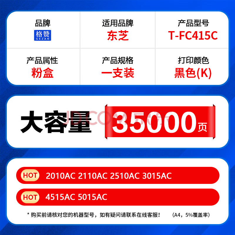 商品相册:格赞T-FC415C粉盒适用东芝2010AC粉盒2110AC墨盒2510AC 2615AC 3015AC碳粉4515AC硒鼓5015AC打印机墨粉黑色大容量第